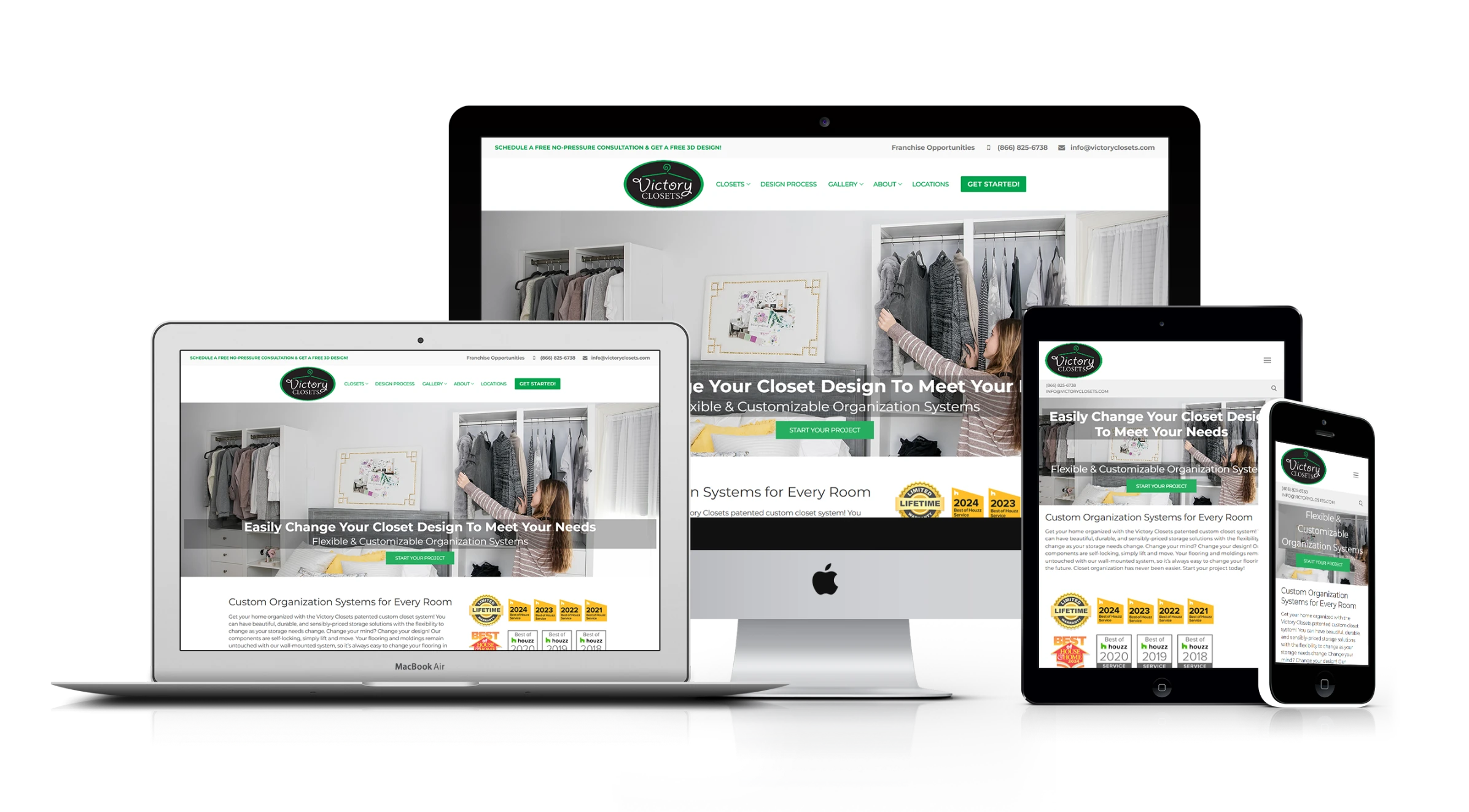 I designed this website for Victory Closets to showcase closet solutions, consultations, galleries, locations, and lead generation.