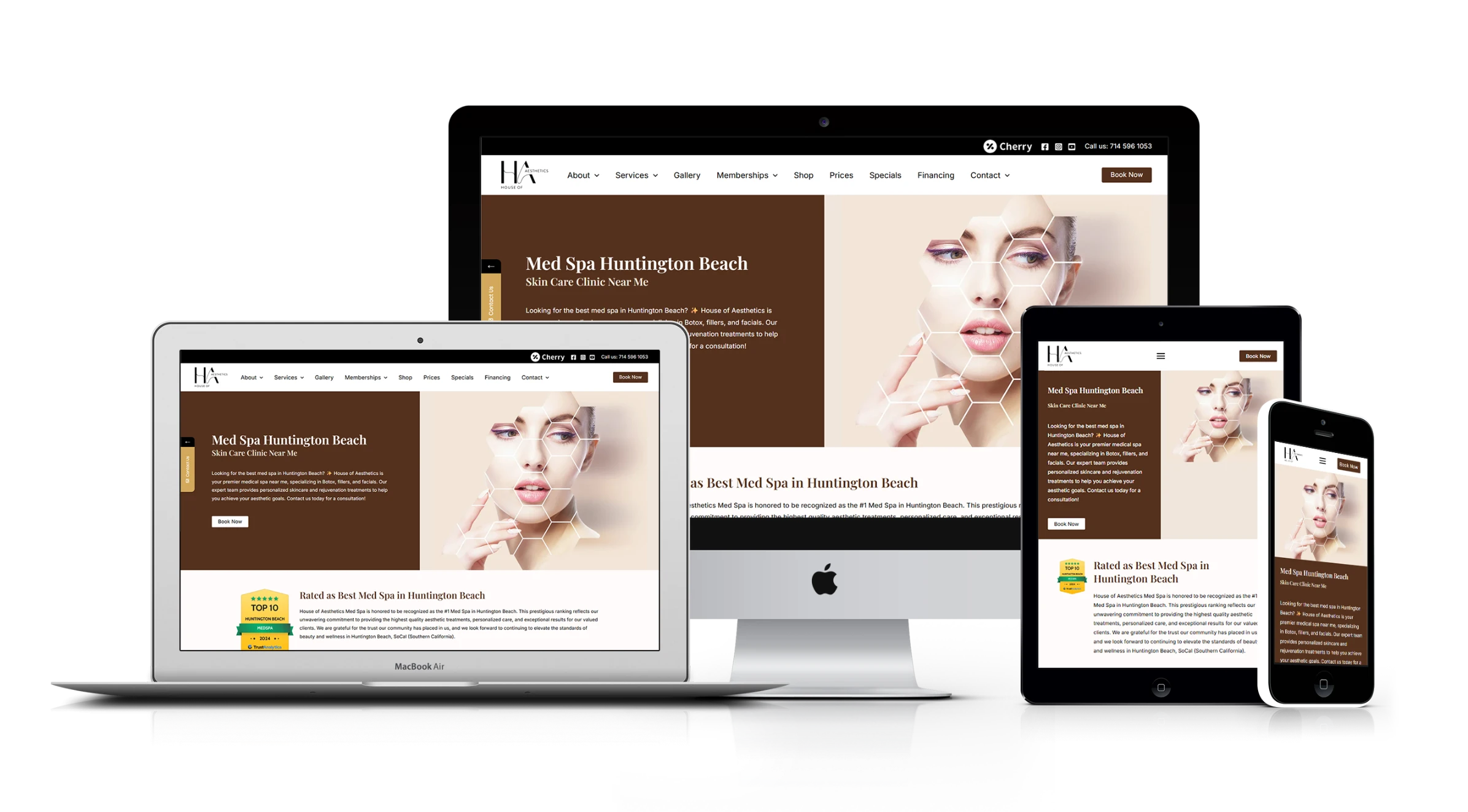 The website focuses on expert-led care, luxury experience, before-after results, local trust, and strong booking calls-to-action.